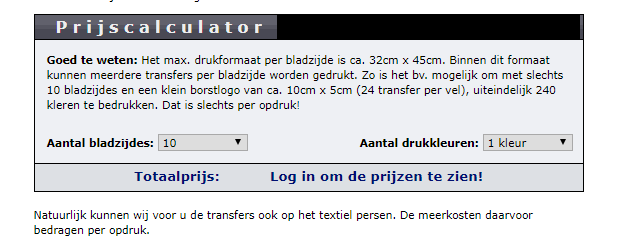 Loe- Posted August 10, 2017 Share Posted August 10, 2017 Hoi! Ik zou graag eenzelfde systeem als op de bijlage willen integreren op de homepage (dus niet bij de producten zoals in de addons store te vinden is). Dus een simpele prijs calculator welke ik per categorie zelf kan instellen, danwel gebasseerd op een m2 prijs, danwel gebasseerd op losser maten die ik zelf in geef, per categorie. Wie kan me vertellen of er een soortgelijke module is voor Ps 1.6(.1.9-1.13) en waar ik deze kan vinden? Op de bekende kanalen en via google vindt ik alleen "offerte per mail" modules, of beperkt instelbaar. Ik wil hem echt alleen en dedicated op de homepage hebben zonder spcifieke producten er al bij. bedankt! Link to comment Share on other sites More sharing options...