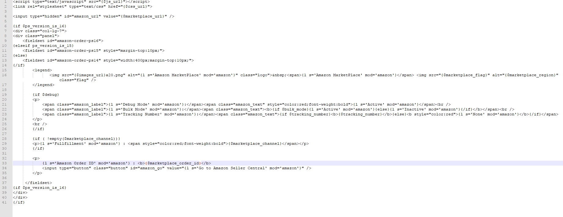 Milen Posted August 11, 2017 Share Posted August 11, 2017 Buens a todos, he tenido unos problemas con el módulo de amazon de comoon services y al fin he vuelto a hacer que funcione. Sin embargo antes cuando se descargaba el pedido de amazon justo al lado de la etiqueta "ID de pedido de Amazon : " aparecía el número de pedido y si pinchabas en el botón de al lado te dirigía a amazon con ese número en la dirección url para ir directos pero ahora no aparece. He localizado la plantilla que escribe ese valor "AdminOrderStandard.tpl" el cual tiene una variable llamada $marketplace_order_id, pero por lo que se ve no devuelve ningún valor. Además antes también me mostraba el número de seguimiento, pero tras estos problemas que he tenido también me ha desaparecido cuando se muestra el pedido en prestashop. En la primera imagen muestro donde debería de escribir la plantilla el valor del id del pedido de amazon y el segundo pantallazo es el código de la plantilla. Si alguien me pudiera ayudar le estaría muy agradecido!! Saludos y Gracias. Link to comment Share on other sites More sharing options...