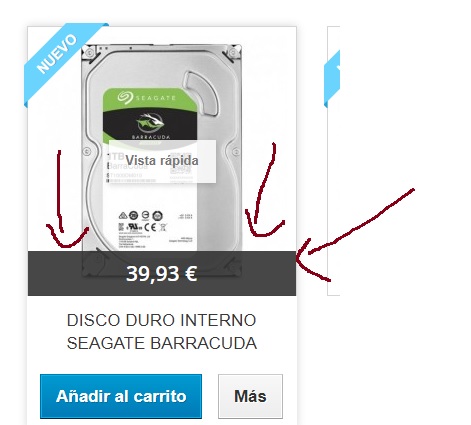 dimoky Posted August 11, 2017 Share Posted August 11, 2017 Buenas, tenia una pregunta, me gustaria cambiar el fondo que sale tras el precio al pasar el raton por el producto en la pagina principal de mi tienda.(es el gris oscuro que sale tras el precio) La web es esta: www.tecnoinformatica.com.es Lo intente cambiando el archivo price-container-bg.png de la carpeta theme/img pero sigue el mismo color. ¿Alguien sabe como cambiarlo? Adjunto una foto: Link to comment Share on other sites More sharing options...