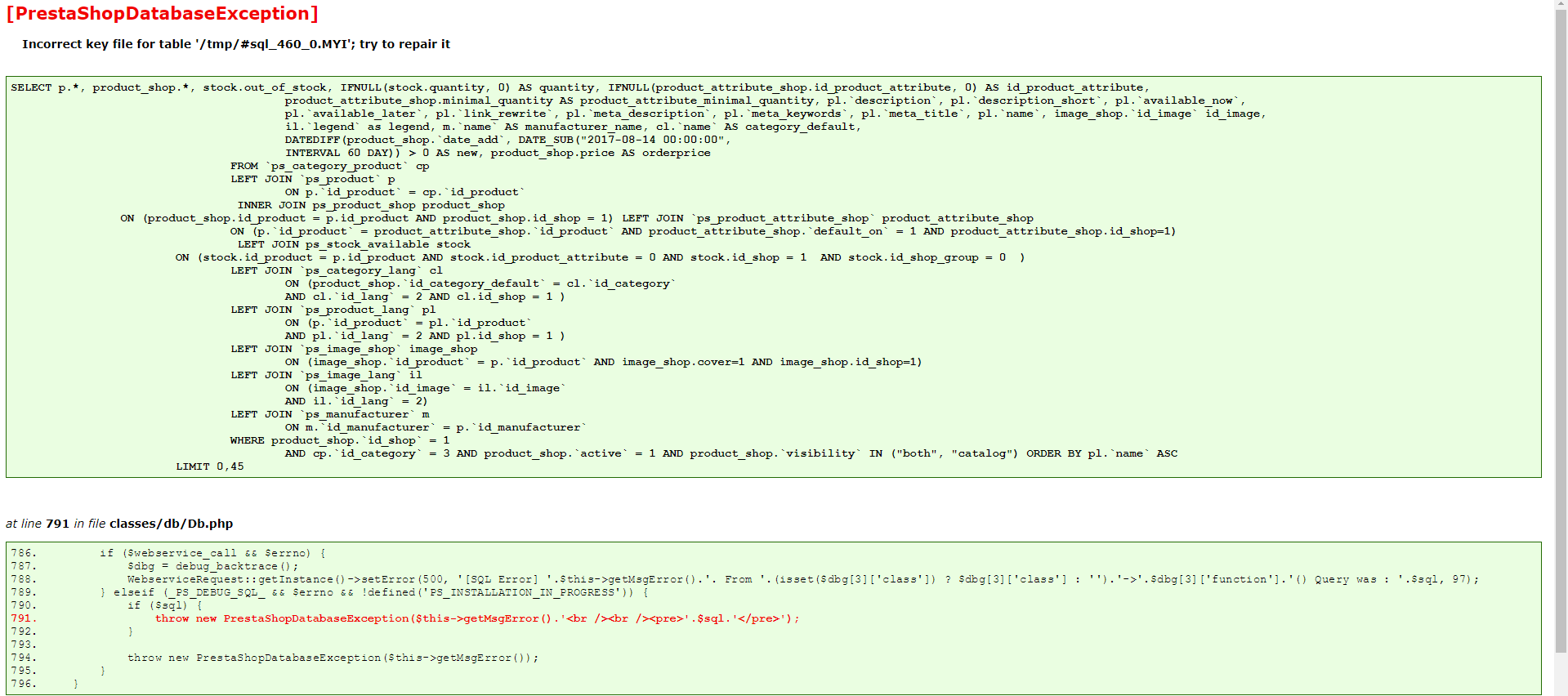 Actualmente me encuentro con un inconveniente al momento de filtrar (ordenar) en mi tienda. Esto sucede con el ordenamiento predeterminado que trae la prestashop. Al ordenar por precio, por nombre, por stock o por referencia me muestra a veces la cantidad de productos que arroja la consulta pero no me muestra los productos, pero en otros casos me dice que no existen productos (pero tengo la certeza de que existen).