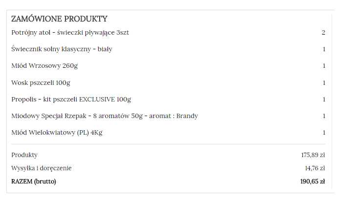 0 bblues Posted August 19, 2017 Author Share Posted August 19, 2017 Nadal wałkuję temat. Konto klienta -> historia zamówień -> szczegóły W pliku wynikowym tworzona jest tabelka: ... <td>Nazwa produktu</td> <td>ilość</td> <td>Ccena jednostkowa</td> <td>Wartość produktów</td> </tr> </tbody> plik który ją tworzy to /NAZWA_TEMPLATKI/templates/customer/_partials/order-detail-no-return.tpl i ten fragment wygląda tak: ... <td> {if $product.customizations} {foreach $product.customizations as $customization} {$customization.quantity} {/foreach} {else} {$product.quantity} {/if} </td> <td class="text-xs-right">{$product.price}</td> <td class="text-xs-right">{$product.total}</td> </tr> {/foreach} i to co zaznaczyłem na czerwono wyświetlane jest w cenach netto. Przy czym podsumowanie całościowe jest podawane brutto w kolejnej tabelce. Mogę prosić mądrzejszych o pomoc? Link to comment Share on other sites More sharing options...