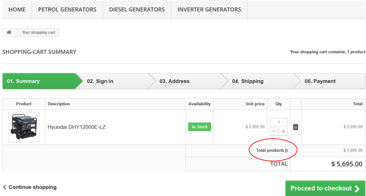 Checkout page "Total products" error