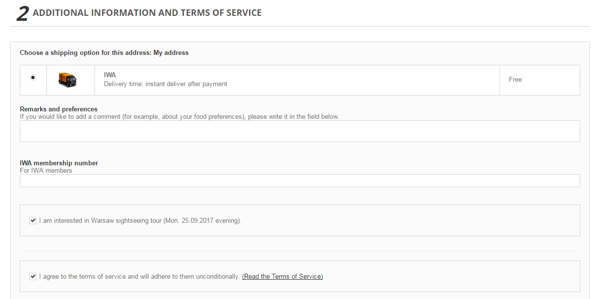 Jednym z tych pól był opcjonalny checkbox ("Czy jesteś zainteresowany wycieczką..."), kolejnym (równie opcjonalne) miejsce do wpisania krótkiego tekstu przez użytkownika.