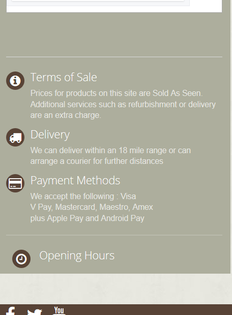 BrainSuperGlue Posted August 23, 2017 Author Share Posted August 23, 2017 I think you have no display on mobile devices, look at the option shown in the screenshot -------------------------------- OK, well that's better. The cmsinfo block now appears for all devices but as before, as the screen gets smaller, the opening times sub block get smaller and smaller until it's just a title. Doing some digging in Inspect it appears that the opening times themselves (not the Opening Times title) are inside a table. One the right hand side of the Inspect window it shows max-width to be 100%, which makes sense as that carries over being responsive. However, the height of the table appears fixed at 135px. Could the reason the opening times don't show is that the height of the table isn't responsive? How could I change the setting so it is? Many thanks BSG Link to comment Share on other sites More sharing options...