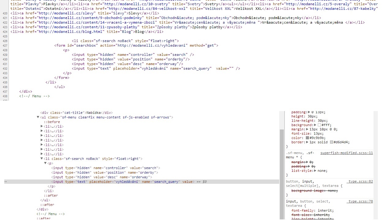 w blocktopmenu.tpl jest form oraz w "pokaż źródło" jest ten <form> to dlaczego w "zbadaj element"? wynika z tego że podczas renderowania strony on jest tylko potem coś się dzieje i on jest usuwany tylko przez co? jak to sprawdzić?