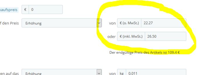 rictools Posted September 3, 2017 Share Posted September 3, 2017 Ich würde generell den wichtigeren Preis (normalerweise also den Preis inkl. MwSt.) eintragen und den Preis ohne MwSt. daraus berechnen lassen. Link to comment Share on other sites More sharing options...