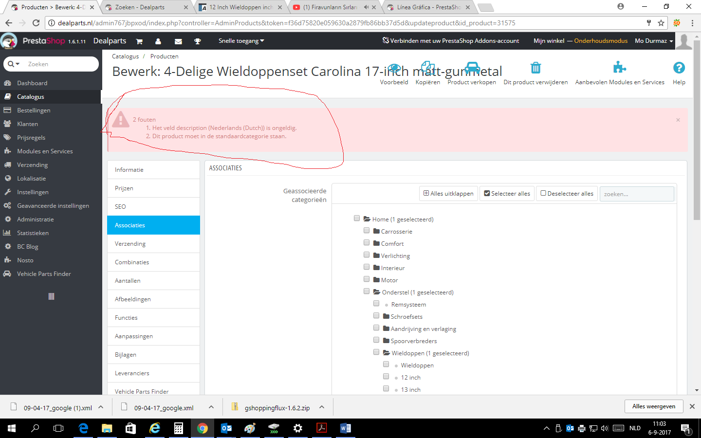 ik kan   producten  niet verplaatsen  van categorie naar een subcatergorie  krijg deze  fout melding  .