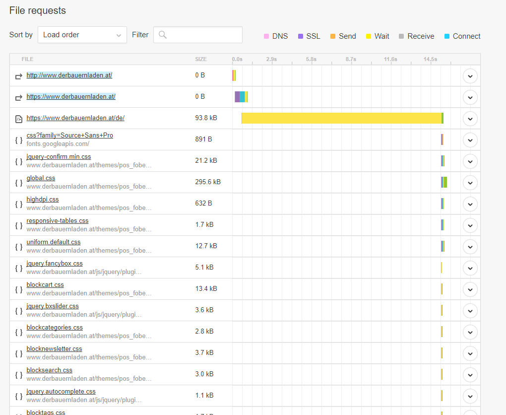 [email protected] Posted September 7, 2017 Share Posted September 7, 2017 Dear Guys! I am struggling with my Prestashop 1.6.11 installation with some modules on it. It's all about the page loading speed: The server or first header response takes nearly 15 seconds After that waiting time, the shop loads extremely quick. Here is the link to try yourself: https://www.derbauernladen.at Has anyone an idea ? Link to comment Share on other sites More sharing options...