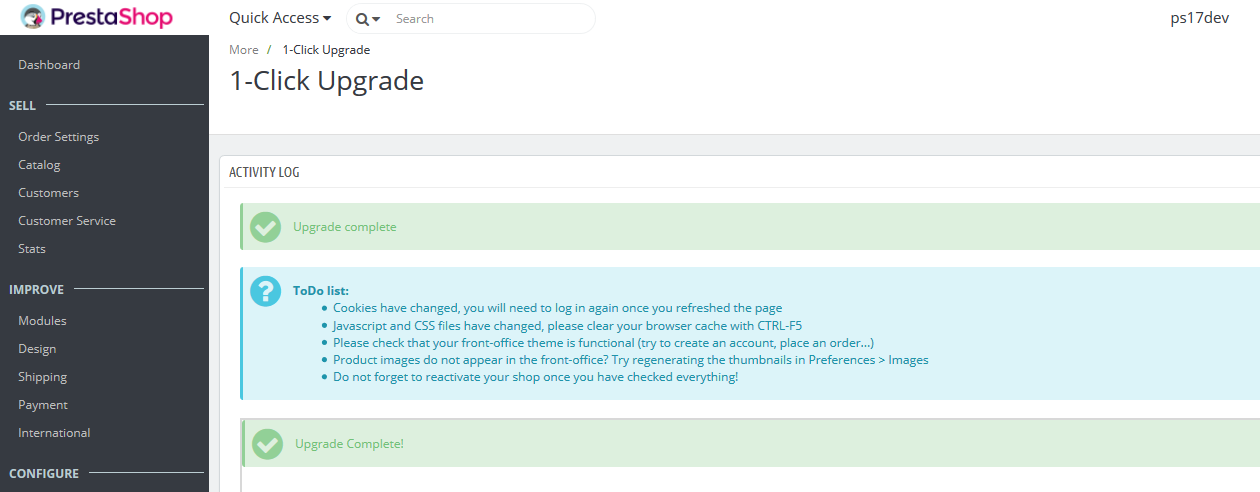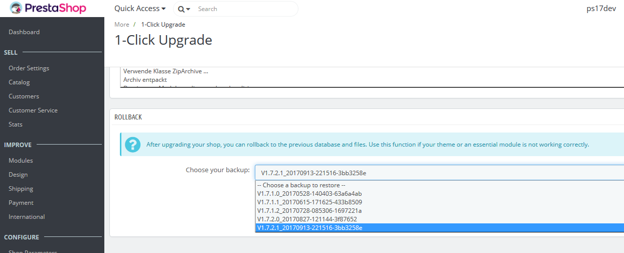 Scully Posted September 13, 2017 Share Posted September 13, 2017 Filezilla ist die "zweitbeste" Methode. Direkt auf dem Server ist zuverlässiger. Und ohne weitere Schritte funktioniert das von SliderFlash erwähnte Vorgehen nur dann auch im Betrieb reibungslos, wenn es zwischen der alten und der neuen PS-Version keine Änderungen an der Datenbank-Struktur gegeben hat. Im Schritt von 1.7.2.1 auf 1.7.2.2. ist das der Fall, häufig jedoch nicht. Link to comment Share on other sites More sharing options...