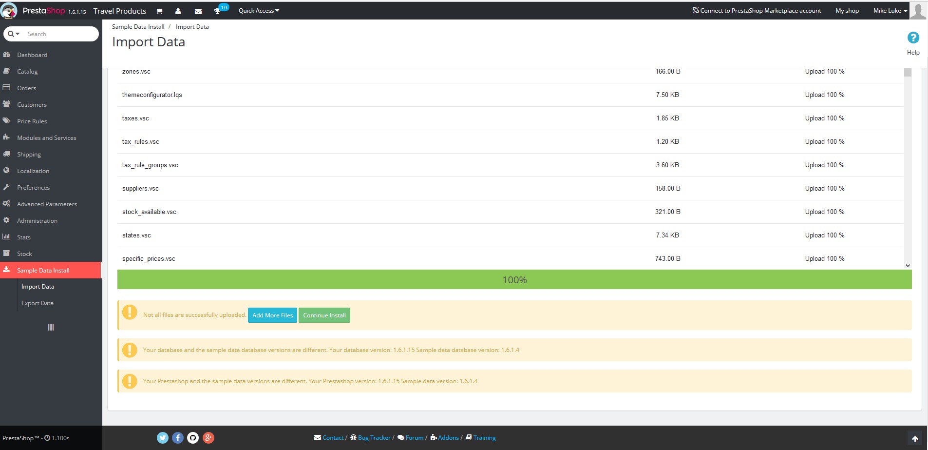 ilvsportfoto Posted September 10, 2017 Share Posted September 10, 2017 Hy, I finally managed to put online my local prestashop test site. Prestashop installed: 1.6.1.16 (i see now it is 1.6.1.17) But the template is buggy from the live demo. Here is my website (in test for now to see if i can use that): http://www.centrulbms2.ilvphoto.ro/ and from here i took the template: Demo Preview for Free PrestaShop 1.6 Template PrestaShop Theme #51683 https://www.templatemonster.com/demo/51683.html There are some things different. I see css issues and modules that don't appear. I did all they asked to install the prestashop then the database from a clear install. When loading the sample data, after almost 15 minutes of loading i had that error: Your database and the sample data database versions are different. Your database version: 1.6.1.16 Sample data database version: 1.6.1.4 I put an image to see all the messages. Should i try to install the older version 1.6.1.4? When i did that install, the 1.6.16 was last stable version (PrestaShop v1.6.1.16 Stable). I don't understand why a lower number is the latest, but after upload date, i thought that is the good road. Can somebody help with a solution to that? I still don't know what modules are missing, it is kind of hard to understand how to activate and move to positions because they don't move at selection... and if this not working, i must abandon prestashop. I don't want that because i see it has good features and can be a good solution for me but... Thank you Link to comment Share on other sites More sharing options...