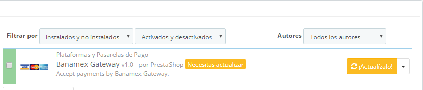 Heartcraftmx Posted September 14, 2017 Author Share Posted September 14, 2017 Siempre necesitas contactar con la plataforma de pago sea Paypal, Bancomer o Banamex para contratar sus servicios y posteriormente comprar el módulo que integre tu tienda con la plataforma. En el baco de Banamex tienes este módulo en Addons https://addons.prestashop.com/es/pago-tarjeta-carteras-digitales/27488-pago-con-tarjeta-banamex.html Ok entonces solicito mi TPV y compro el modulo de pago "En el baco de Banamex tienes este módulo en Addons https://addons.prest...ta-banamex.html" Con este modulo mis clientes pueden pagar con cualquier tarjeta de credito VISA Y MASTERCARD? Gracias por tu respuesta y disculpa es que desconozco sobre este tema Link to comment Share on other sites More sharing options...