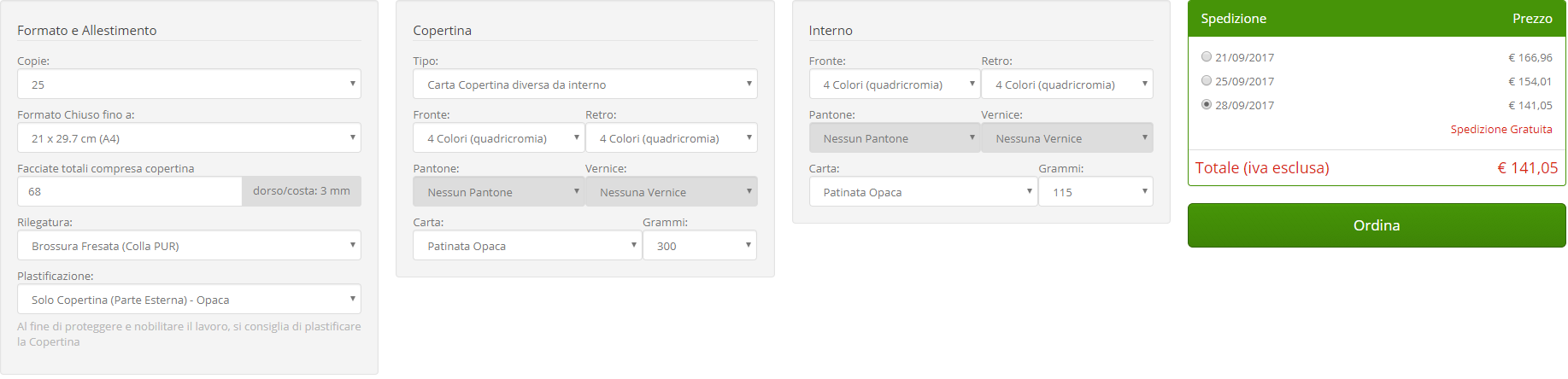 tonystar83 Posted September 19, 2017 Share Posted September 19, 2017 (edited) Salve, dovrei realizzare un sito per la stampa online dove l'utente possa scegliere le varie opzioni prima di inviare l'ordine, tipo il colore,il numero di copie,il tipo di carta,la rilegatura e la plastificazione e in base a queste selezioni cambia il prezzo finale del prodotto. Qualcosa di simile a pressup. Allego alla seguente immagine di come vorrei fosse Grazie mille del supporto. Edited September 19, 2017 by tonystar83 (see edit history) Link to comment Share on other sites More sharing options...