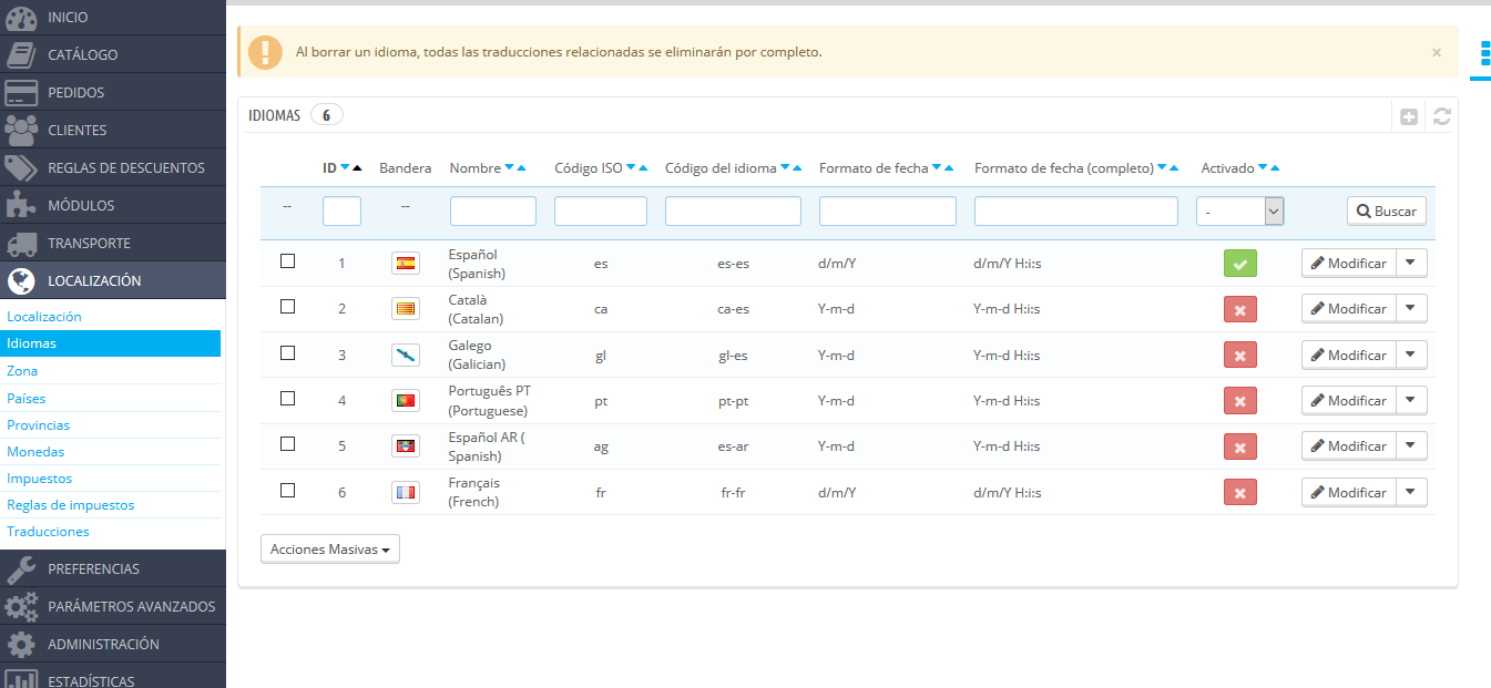 Tengo un ecommerce en español en prestashop, cuyo tld es un .com Estoy teniendo un problema de error 404 de páginas que se han indexado, y se siguen indexando, del tipo ".com/es" Voy realizar redireccionamiento para solventar el problema, pero me surge la duda de si tengo configurado el idioma de una manera correcta, ya que no me gustaría que me volviese a suceder.