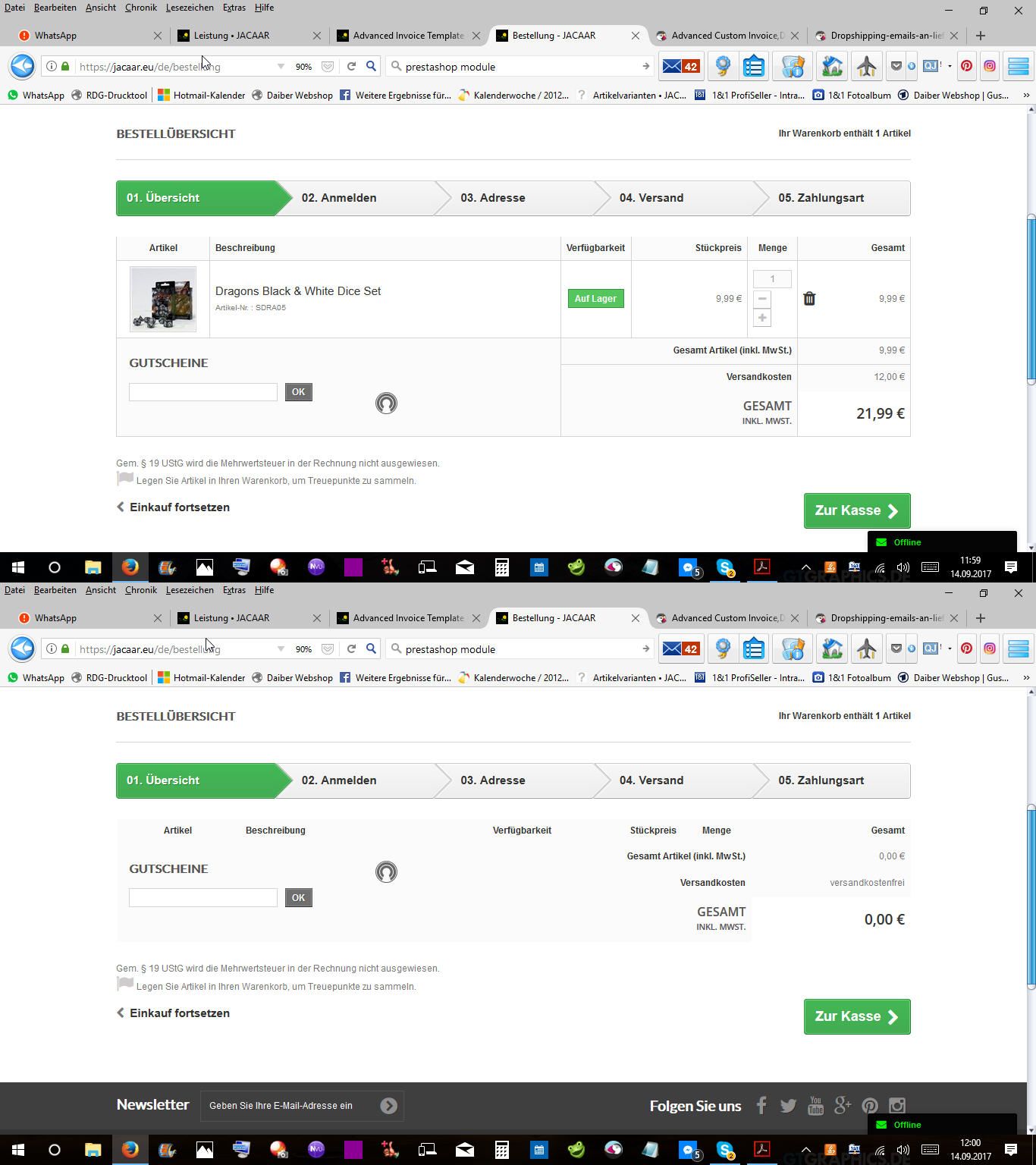 JACAAR Posted September 24, 2017 Author Share Posted September 24, 2017 Wen ich Alle Overrides deaktivieren auf JA stelle, werden im Warenkorb alle Artikel korrekt angezeigt, das Rechnungsmodul funktioniert nicht. Stelle ich beide Optionen auf JA, werden im Warenkorb alle Artikel korrekt angezeigt, das Rechnungsmodul funktioniert nicht. Link to comment Share on other sites More sharing options...