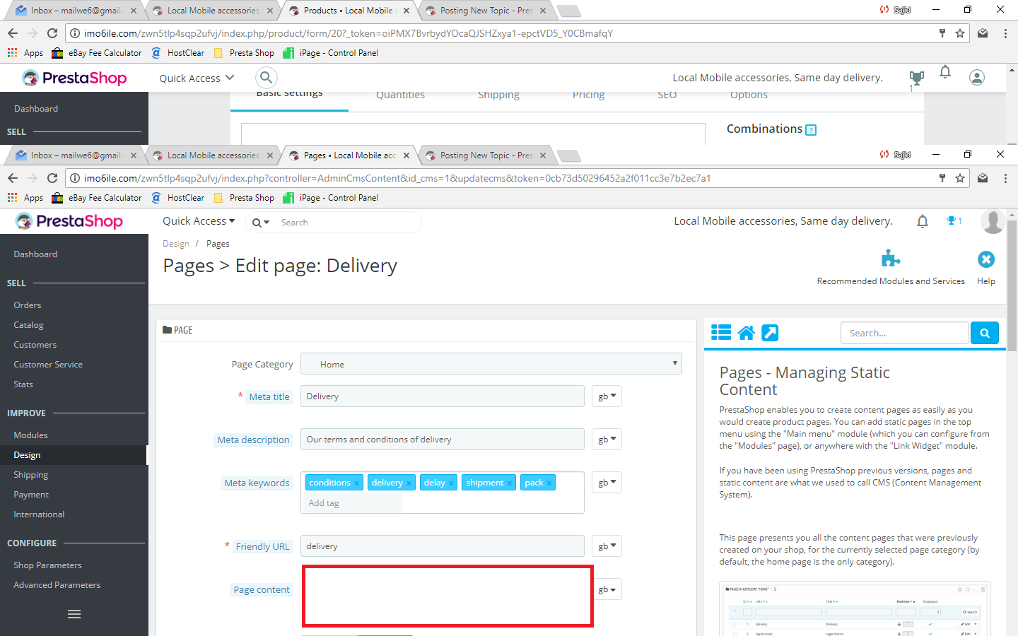5ajid Posted September 24, 2017 Share Posted September 24, 2017 Hi I have some text box missing issue in few places. one is in Design > Pages > when you add or edit a page the text box for the Page content is missing. The same problem occurs in Catalog > Products : when you try to add a new product The is no text box for description and summary. Can any one help please. Thanks 1 Link to comment Share on other sites More sharing options...