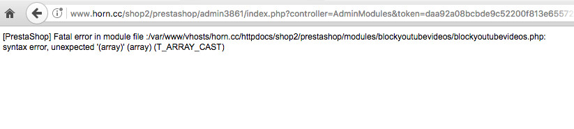 Danach habe ich eine neuere Version von PS installiert (1.6.1.17) aber das half auch nicht, dann kam immer die Fehlermeldung (Bild2) und im Frontoffice fehlten auch einige Sachen.