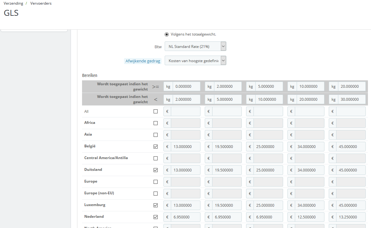 RemySan Posted October 2, 2017 Author Share Posted October 2, 2017 Are carriers set up within the products or are all products eligible to use all carriers? How many and which carriers have you set up? For which zones are these carriers enabled? Did you check the zone settings under locatlization to make sure the zone belongs to the correct country? Are carriers set up within the products or are all products eligible to use all carriers? All products are eligible to use all carriers. How many and which carriers have you set up? I have 3 carriers, PostNL, GLS and pickup. These carriers are self created. Here a screen from one of the carriers how it's set up. Carrier Setup: For which zones are these carriers enabled? These zones are enabled: België, Germany, Netherland and Luxemburg. All of these zones are enabled. Look at the screen. Zones: Did you check the zone settings under locatlization to make sure the zone belongs to the correct country? Yes these settings are correct. The weird thing of this situation is that it has worked. He stopped at once. Link to comment Share on other sites More sharing options...