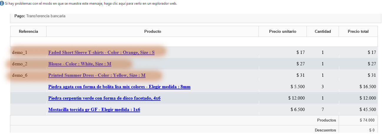 rbatousai Posted October 9, 2017 Share Posted October 9, 2017 Amigos a ver si me pueden ayudar resulta que al hacer un pedido en prestashop este llega bien pero en el resumen que se envia por notificacion tanto por correo como el que queda en el admin aparecen datos de los productos que vienen en la demo al momento de instalar el prestashop, estos productos los elimine y todas sus características y luego comense a cargar por lo cual no se porque aparecen, ojala me puedan ayudar y saber de donde mas eliminarlos para que no aparezcan. Adjunto imagenes Link to comment Share on other sites More sharing options...