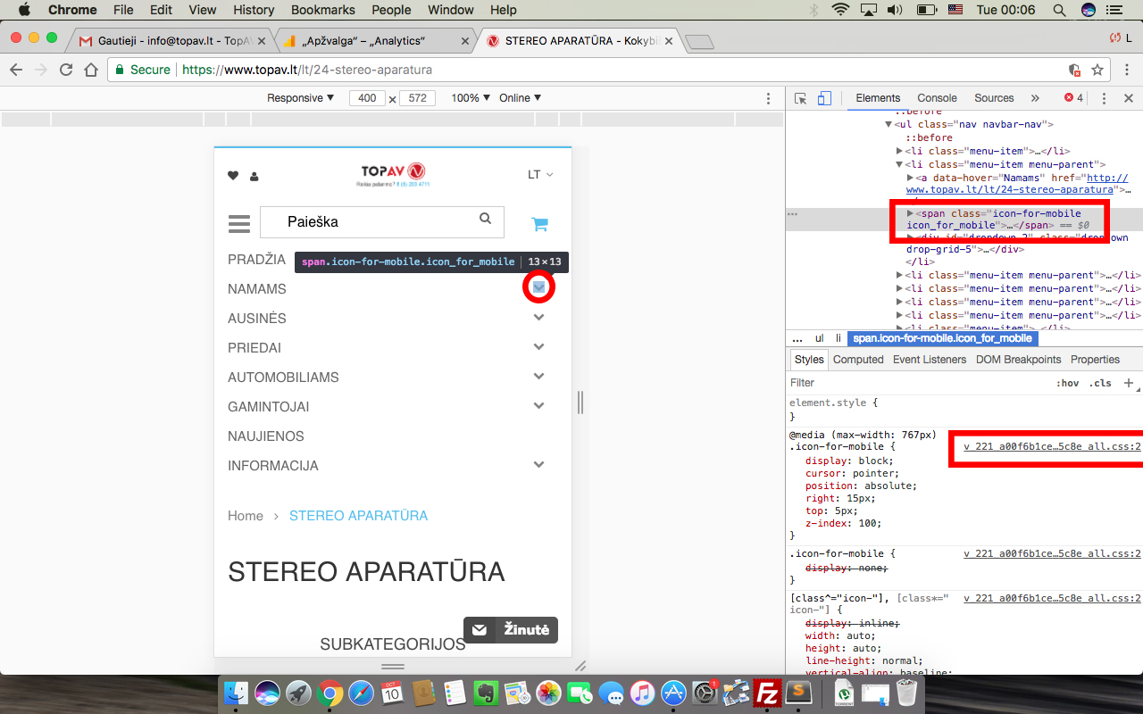 GreddyMR2 Posted October 9, 2017 Share Posted October 9, 2017 (edited) Hello, I am trying to add a background on top menu arrow that you can see in attached picture. The problem is that I see CSS file with is a cached version and even if I edit it, it doesn't work. How can I find original CSS file to edit that menu arrow? The problem is while it has no background, it's very difficult to click the arrow on mobile. My website is www.topav.lt thanks for any help! Edited October 9, 2017 by GreddyMR2 (see edit history) Link to comment Share on other sites More sharing options...