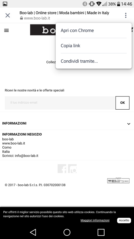 lu1782 Posted October 12, 2017 Share Posted October 12, 2017 (edited) Hi! I created a site ( www.boo-lab.it) and I have a big problem viewing the homepage when it comes from a link on instagram or facebook, the problem is only written by smartophone! I insert the screens of how I see the homage I come from an instagram link and how it should be seen.Starting from the social pagehttps://www.instagram.com/_boolab_/the result is the one attached, and to see the site well, I need to click on "Open with Chrome"Can you help me please? thank you so much Edited October 12, 2017 by lu1782 (see edit history) Link to comment Share on other sites More sharing options...