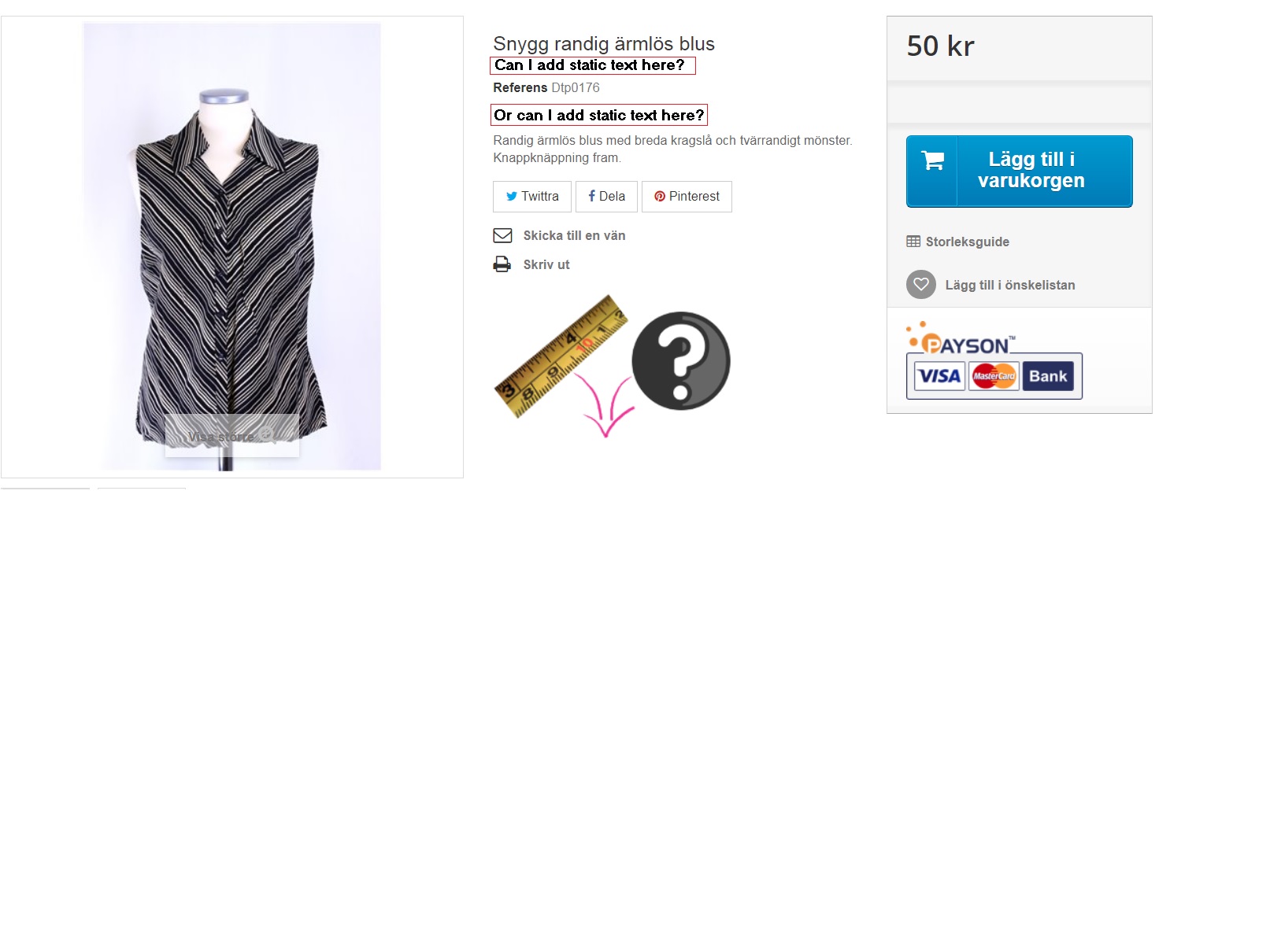 Ricky Blunda Posted October 13, 2017 Share Posted October 13, 2017 Hello Is there a simply way I can add static text to all product pages? Please see enclosed example and you'll see what I mean...preferably, text should be formatted in the same way as the "Reference" text field with title in bold and rest of text non-bold. Many thanks!! Link to comment Share on other sites More sharing options...
