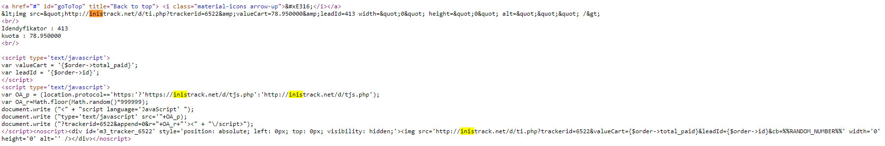 dorahex Posted October 15, 2017 Share Posted October 15, 2017 Drodzy, Potrzebuję waszej pomocy.Prestashop 1.7.2 W pliku OrderConfirmationController.php ..... $this->context->smarty->assign(array( 'HOOK_ORDER_CONFIRMATION' => $this->displayOrderConfirmation($order), 'HOOK_PAYMENT_RETURN' => $this->displayPaymentReturn($order), 'order' => $presentedOrder, 'id_order' => $this->id_order, 'total_paid' => $order->total_paid, 'register_form' => $register_form, )); // Conversion Tracking Code $order = new Order((int)($this->id_order)); $order_products = $order->getProductsDetail(); $order_products_ids = ''; if (is_array($order_products)) { foreach ($order_products as $product) { $order_products_ids .= $product['product_id'] . '|'; } $order_products_ids = substr($order_products_ids, 0, -1); } self::$smarty->assign( 'INISPLATFORM_CONVERSION_TRACKING_CODE', '<img src="http://inistrack.net...6522&valueCart=' . $order->total_paid . '&leadId=' . $order->id . ' width="0" height="0" alt=""" />'); // Conversion Tracking Code Również dodałam w kod w pliku order-confirmation.tpl {$INISPLATFORM_CONVERSION_TRACKING_CODE} <br/> Idendyfikator : {$id_order} kwota : {$total_paid} <br/> <script type='text/javascript'> var valueCart = '{literal}{$order->total_paid}{/literal}'; var leadId = '{literal}{$order->id}{/literal}'; </script> <script type='text/javascript'>{literal} var OA_p = (location.protocol=='https:'?'https://inistrack.ne...k.net/d/tjs.php'); var OA_r=Math.floor(Math.random()*999999); document.write ("<" + "script language='JavaScript' "); document.write ("type='text/javascript' src='"+OA_p); document.write ("?trackerid=6522&append=0&r="+OA_r+"'><" + "\/script>"); </script><noscript><div id='m3_tracker_6522' style='position: absolute; left: 0px; top: 0px; visibility: hidden;'><img src='http://inistrack.net...6522&valueCart={$order->total_paid}&leadId={$order->id}&cb=%%RANDOM_NUMBER%%' width='0' height='0' alt='' /></div></noscript>{/literal} Tkwi jeden problem, ze nie przekazuje dwoch to co oznaczalam strzalka na czerwono. Załączam screeny Czy może ktoś z was wie gdzie ja popełniłam błąd.Byłabym wdzięczna za wsparcie . Pozdrawiam Link to comment Share on other sites More sharing options...