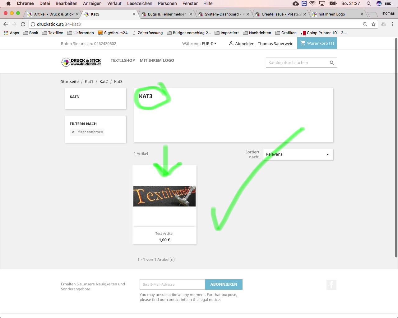 www.druckstick.at Posted October 17, 2017 Share Posted October 17, 2017 Hallo...Übersehe ich da etwas oder ist das ein BUG? Artikel wird in allen übergeordneten Kategorien angezeigt:z.B.:Im Artikel habe ich nur Kategorie 3 zugewiesen:Kat1 Kat2 Kat3 - Artikel Aber angezeigt wird der Artikel auch in den Überkategorien:Kat1 - Artikel Kat2 - Artikel Kat3 - Artikel Bitte um Hilfe....DANKE und schöne Grüße! Link to comment Share on other sites More sharing options...
