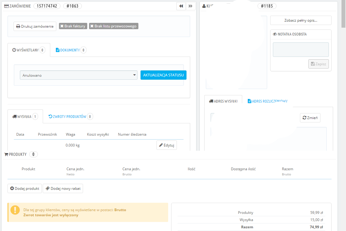 Od pewnego czasu pojawia się notorycznie błąd związany z pustymi zamówieniami.  Nie ukazuje się żaden sposób dostawy oraz płatności, jak i nie widać produktów, natomiast ceny naliczone są prawidłowo (zdjęcia w załącznikach). Szczerze mówiąc nie mam zielonego pojęcia dlaczego tak się dzieje, a dzwonienie do klientów z pytaniem co zamówili nie wygląda dobrze... W koszykach zakupowych czasami są produkty z zamówienia, a czasem ich nie ma.