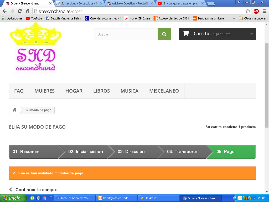 Begoña Posted November 8, 2017 Share Posted November 8, 2017 No consigo activar los módulos de pago, a pesar de que me me dice que los datos se han grabado correctamente , simulo una compra y al final del carrito me dice que "aun no se han instalado módulos de pago" Me puede ayudar alguien Muchas gracias Link to comment Share on other sites More sharing options...