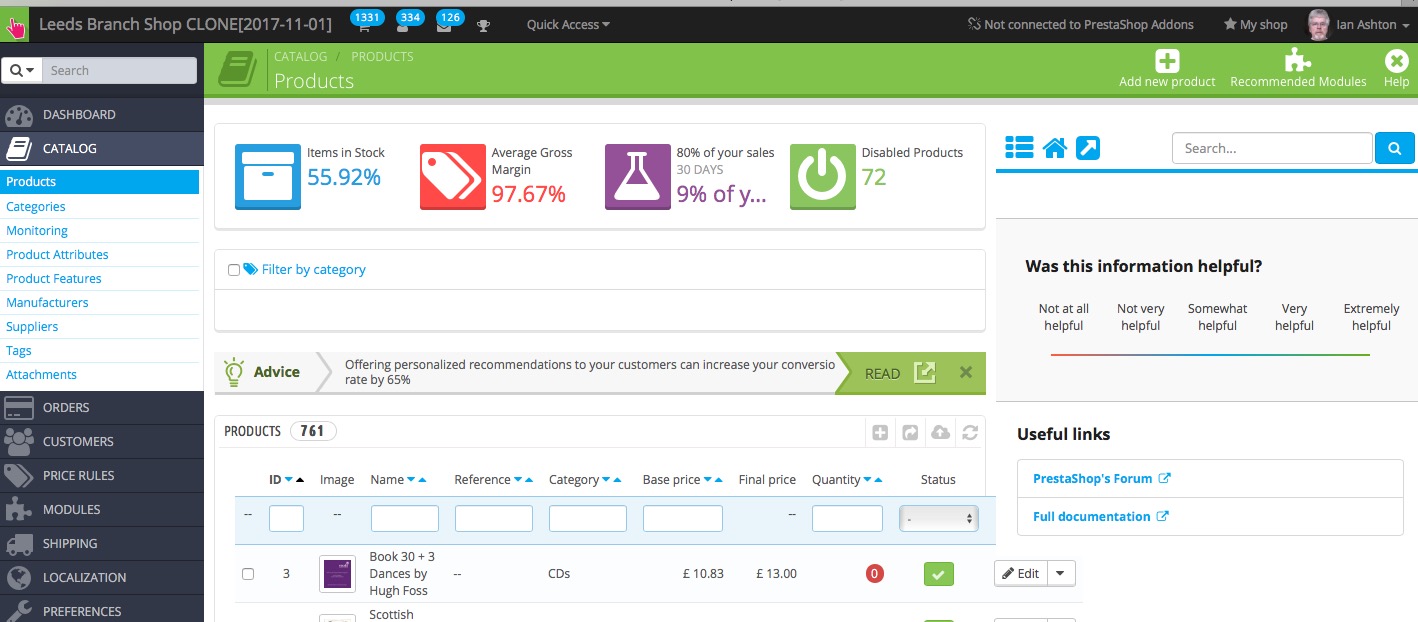 iAshton Posted November 12, 2017 Share Posted November 12, 2017 From the manual Quote Contextual help Since version 1.6.0.7 of PrestaShop, the software's documentation is directly embedded into the administration interface: clicking on the "Help" button from any back office page reduces the main interface's width in order to add a new column on the right, which contains the documentation for that section of the back office. Another click on the "Help" button closes the contextual help. If you do not close the help column, PrestaShop understands that you want it displayed on every page of the back office, and thus will maintain the column open until you have clicked to close it. If the browser's display zone is lower than 1220 pixels width, then PrestaShop will open the contextual documentation in a new browser window rather than reducing the screen space dedicated to the main interface. At the bottom of the help column, a small form enables you to tell the PrestaShop team whether the help section has been helpful to you or not. Rate the help page by clicking on one of the 5 levels of satisfaction. If you click on one of the two lowest levels, PrestaShop will open a short form allowing to detail your thoughts? You can either fill it and click on the "Submit" button, or close the form by clicking on the cross, in which case only your rating will be sent to our server. I've just noticed that on my shops ( live at an ISP and local test versions ) that clicking the HELP button in the Dashboard adds a column on the right hand side as described above BUT only displays the small feedback form and not the contextual help. I haven't used HELP for some time so I can't say when this started happening. The link on the HELP button points to the correct documentation if you open it in a separate tab. However I'm sure it did use to appear in the Dashboard page. Is this something I have done? I feel I've done something stupid but I cannot think what. Checked using Safari, Chrome and Firefox. Did a virgin install on my local test system and the behaviour is the same. Anyone any idea? Link to comment Share on other sites More sharing options...