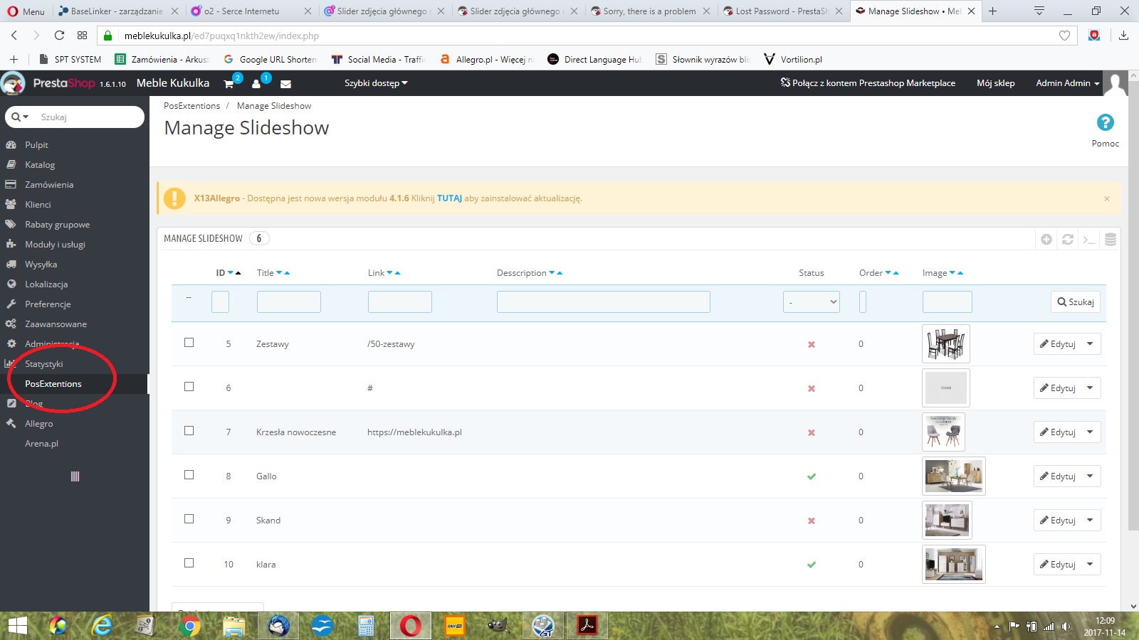 Moduł zdjęcia głównego nie działa, wszystko jest ustawione zdjęcia dodane a moduł nie działa. Mam możliwość dodawania zdjęć na stronie głównej za pomocą takiej chyba nie standardowej zakładki w panelu administracyjnym który nazywa się PosExtentions może to jakoś z tym koliduje? Wyłączałem tam wszystkie zdjęcia i nic.