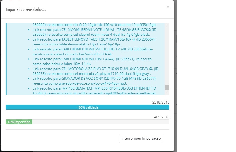 igormarafon Posted November 17, 2017 Share Posted November 17, 2017 (edited) my csv has about 2,500 products, when importing the first step ends very fast, when the second step starts it takes almost all day to import. Does it have a solution? I use the latest version of Prestashop 1.7.2.4 Edited November 17, 2017 by igormarafon bad formated (see edit history) Link to comment Share on other sites More sharing options...