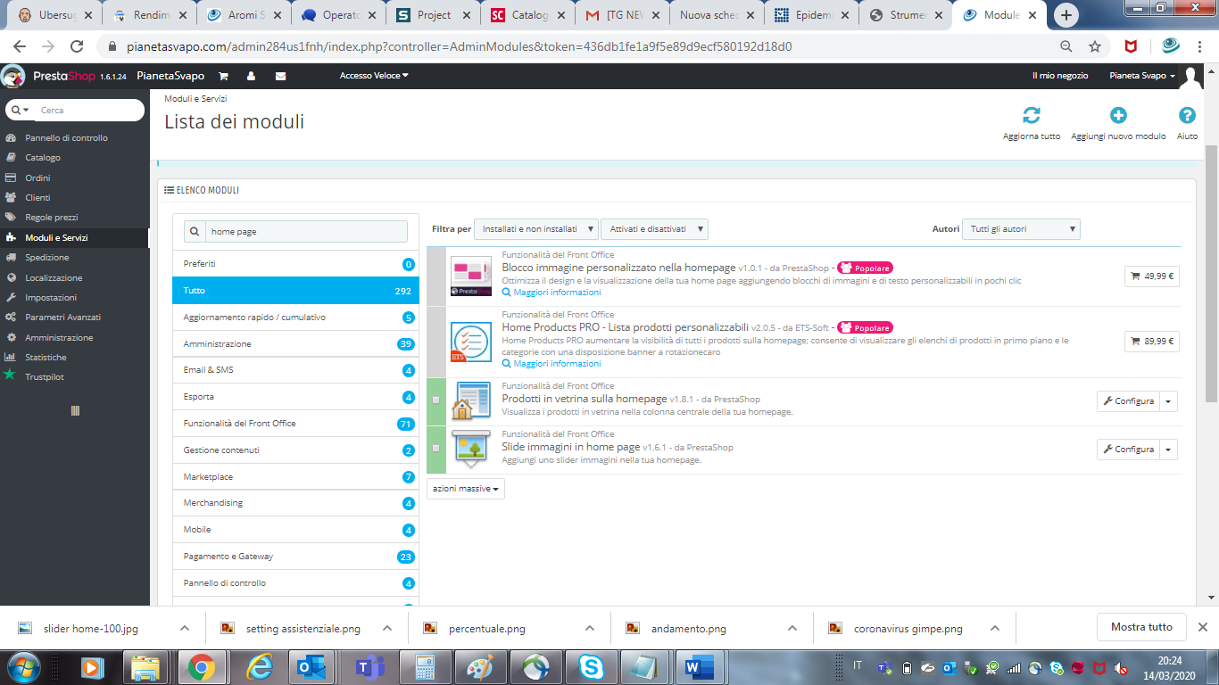 Pianetasvapo Posted March 15, 2020 Share Posted March 15, 2020 Ho fatto come dici ma anche qui non c'è traccia del modulo che descrivi tu. La mia è la versione 1.6.1.24 Link to comment Share on other sites More sharing options...