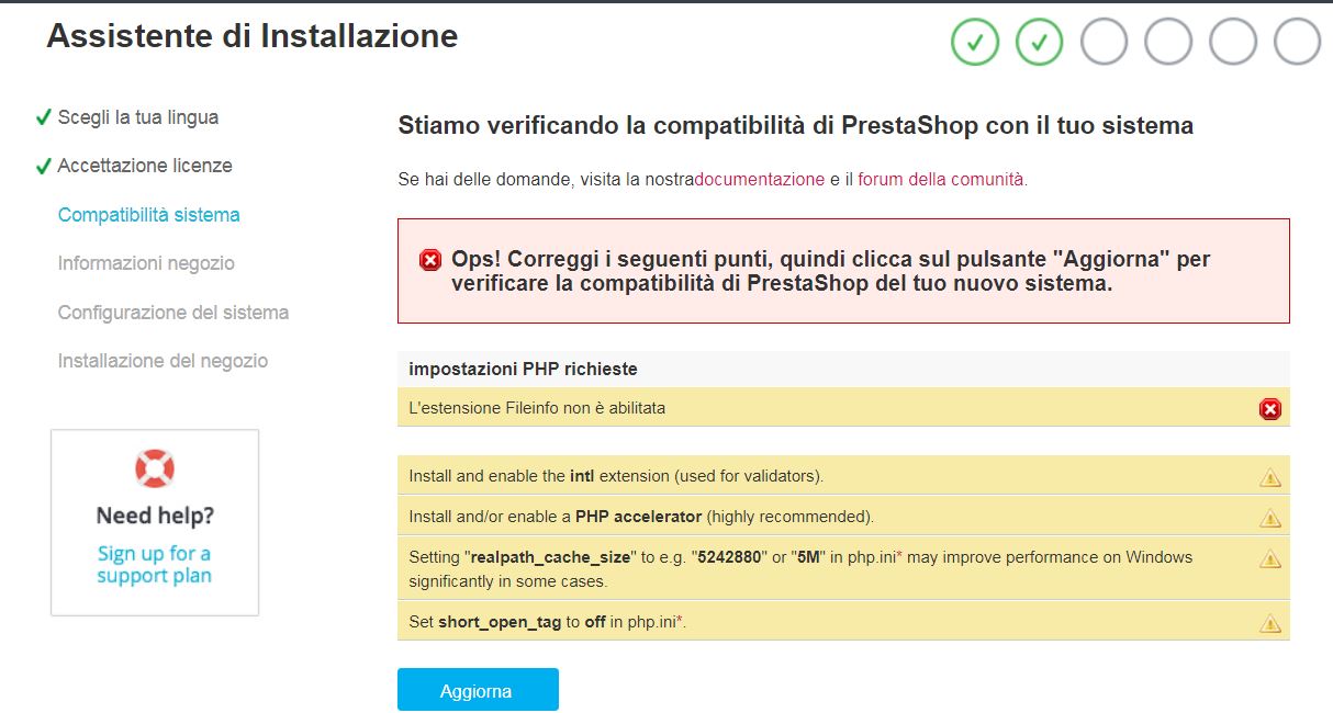 roberto57 Posted November 21, 2017 Share Posted November 21, 2017 salve a tutti ho un problema sto installano prestashop in locale tramite mamp quando mi arriva alla 3° schermata compatibilità sistema mi si presenta una scherma che allego non riesco ad andare avanti qualcuno mi può dare una mano grazie mille Roberto Link to comment Share on other sites More sharing options...