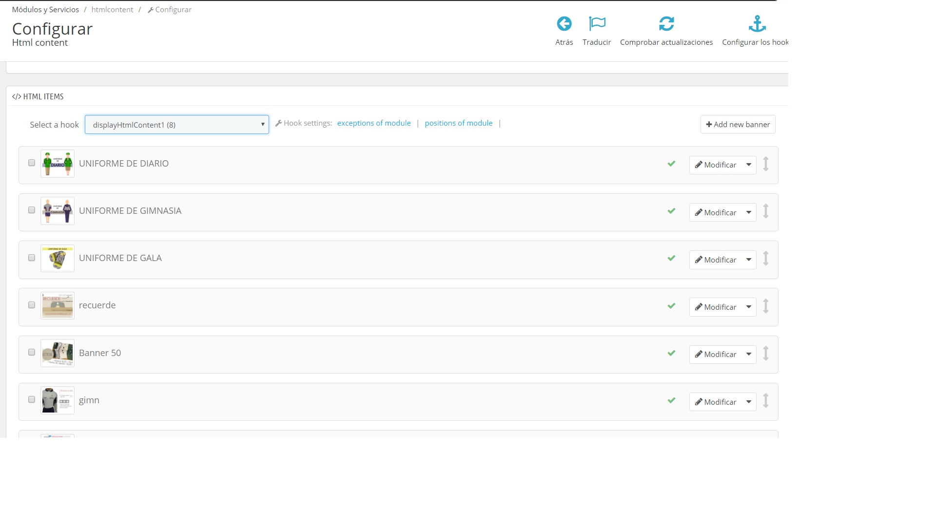 DivInfo Posted November 22, 2017 Share Posted November 22, 2017 Buenos días, tengo un problema con el modulo HtmlContent en Prestashop 1.6.1.11. Al ingresar a la configuración del modulo, no me guarda ningún cambio que realize, sin embargo, en los demás módulos los hace perfectamente ( es decir, la falla solamente es con el modulo Htmlcontent). Desde ya muchas gracias a los que puedan ayudarme. PD: Dejo adjunto una imagen para que puedan ver el módulo si es que no lo tienen. Gracias Link to comment Share on other sites More sharing options...