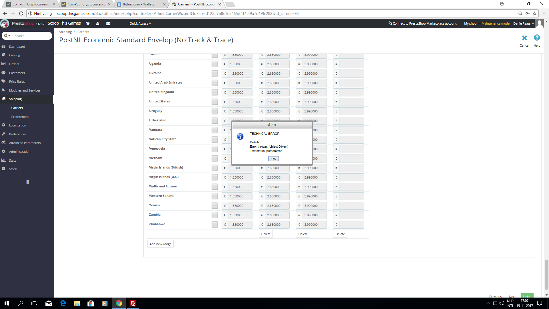 scoopthisgames Posted November 23, 2017 Share Posted November 23, 2017 whenever i add the amount of shipping costs per country and want to save my changes and the ranges it gives me an error which doesnt let me save my changes and deletes everything in shipping everytime i edit it. Link to comment Share on other sites More sharing options...