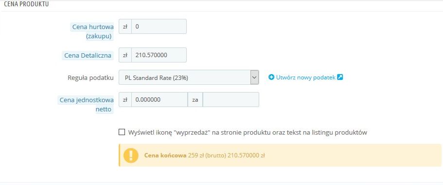 Nie wyświetla mi się pole do wprowadzenia ceny brutto w backoffice. Wszędzie ceny z podatkiem działają - wyświetlają się prawidłowo na stronie, w koszyku, czy w zamówieniu.