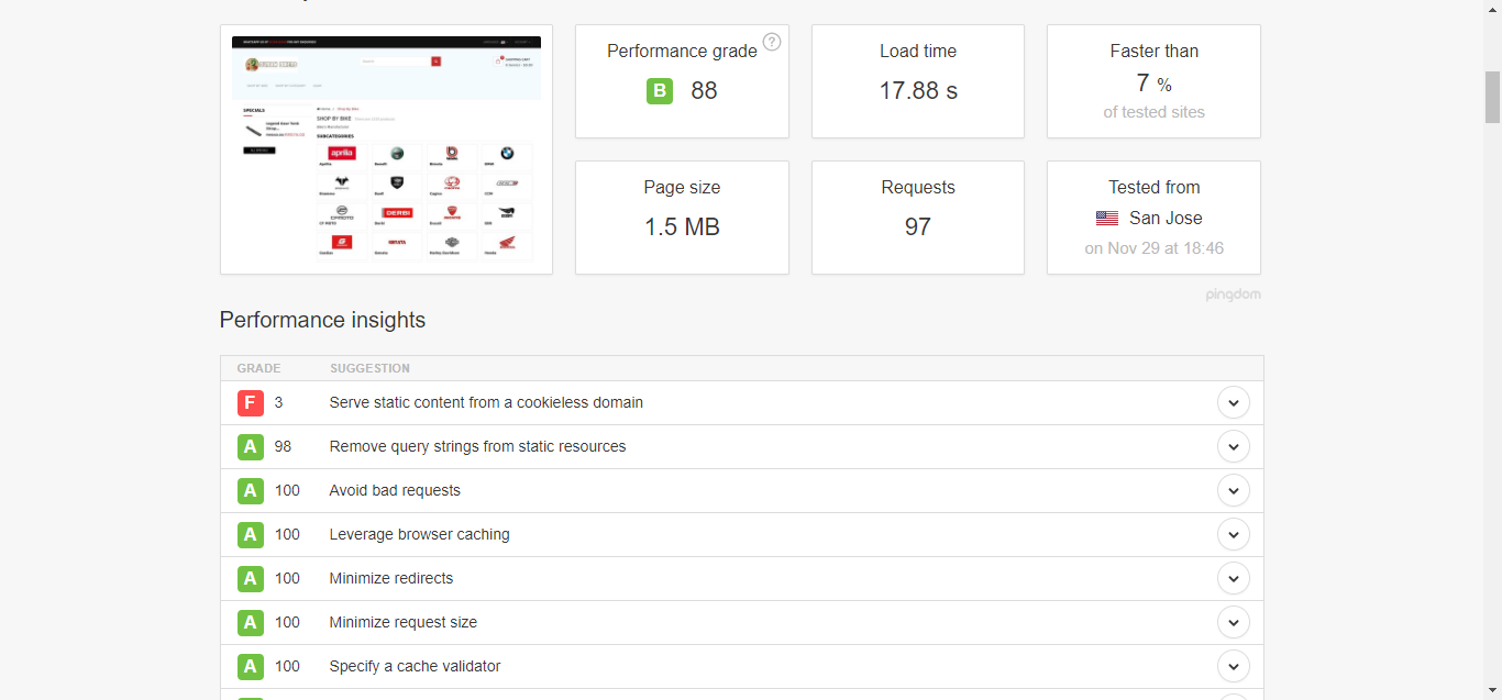 Naddy Posted November 29, 2017 Share Posted November 29, 2017 Hi. Currently, im working on this website. When selecting the menu category such 'Shop by Bike', it took so much time to load. When testing with https://tools.pingdom.com/ it took around 15-20s to load one request. I included the SS when doing the profiling and pingdoms web test. Is there any solution or advice for me to improve the website performance speed? Thanks in advance! Naddy Link to comment Share on other sites More sharing options...