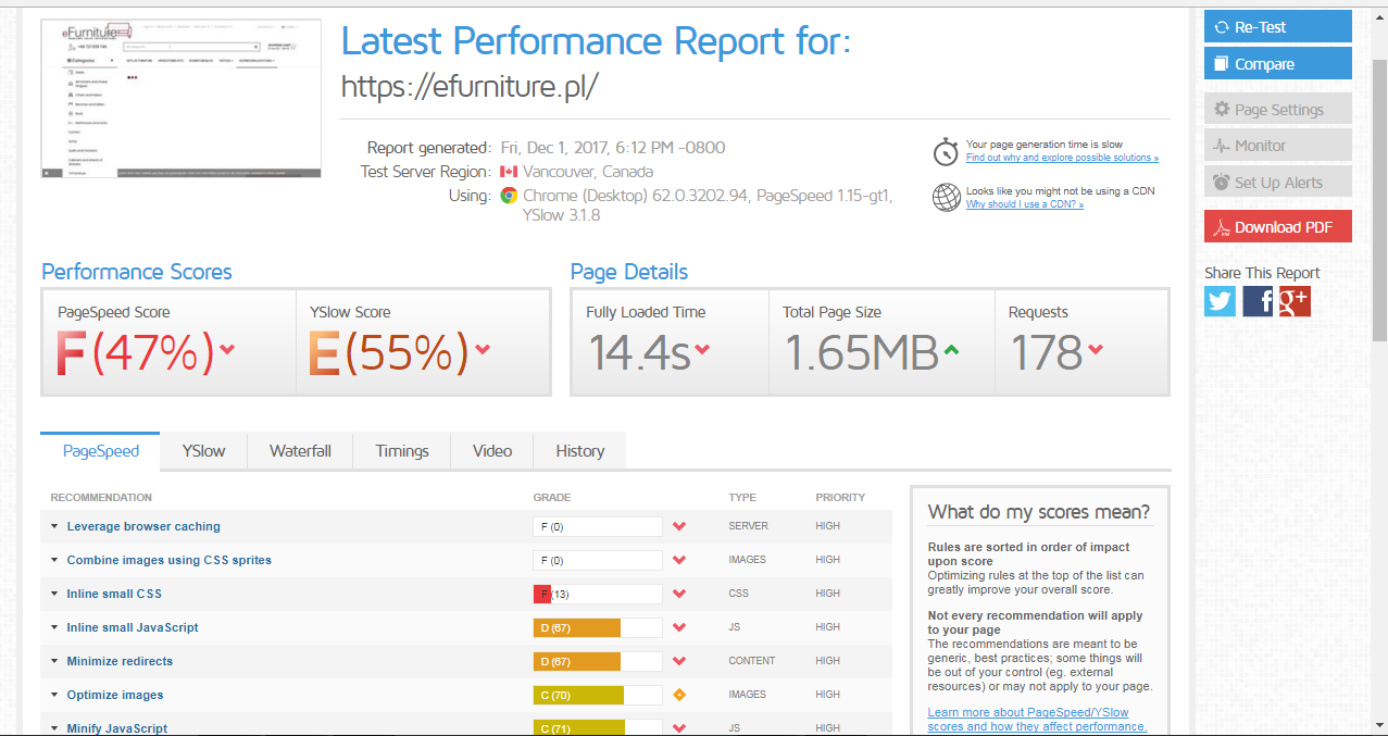 Mam problem, ponieważ mój sklep ostatnio zwolnił. Długo ładuje się tylko strona główna, reszta podstron chodzi płynnie. Adres: efurniture.pl
