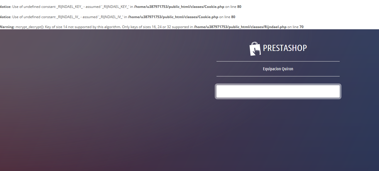 Ledwis Posted December 4, 2017 Author Share Posted December 4, 2017 (edited) Hello Razaro, I have deleted the cache, also it was in the tutorial followed, but nothing. I have deleted everything and upload it by FTP client (before I used the option of the host to import a site) but still the SAME problem. By the way, I tried to log in a client account, and i cannot, it does the same, like loading but nothing happened,: Notice: Use of undefined constant _RIJNDAEL_KEY_ - assumed '_RIJNDAEL_KEY_' in /home/u387971753/public_html/classes/Cookie.php on line 80 Notice: Use of undefined constant _RIJNDAEL_IV_ - assumed '_RIJNDAEL_IV_' in /home/u387971753/public_html/classes/Cookie.php on line 80 Warning: mcrypt_decrypt(): Key of size 14 not supported by this algorithm. Only keys of sizes 16, 24 or 32 supported in /home/u387971753/public_html/classes/Rijndael.php on line 70 Warning: mcrypt_encrypt(): Key of size 14 not supported by this algorithm. Only keys of sizes 16, 24 or 32 supported in /home/u387971753/public_html/classes/Rijndael.php on line 50 If I write worng password, it displays that password is wrong... I update, I wanted to create new account, just to check, and I receive next error: TECHNICAL ERROR: unable to load form. Details: Error thrown: [object Object] Text status: parsererror Some idea? Edited December 4, 2017 by Ledwis (see edit history) Link to comment Share on other sites More sharing options...