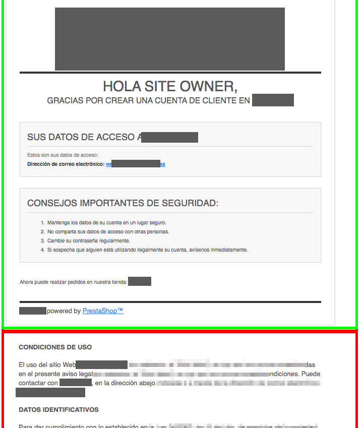 Estoy intentando hacer que en el pie de los correos que envía la plataforma (PS) no aparezcan las CONDICIONES DE USO, DATOS IDENTIFICATIVOS etc,,, Y no sé como hacerlo.