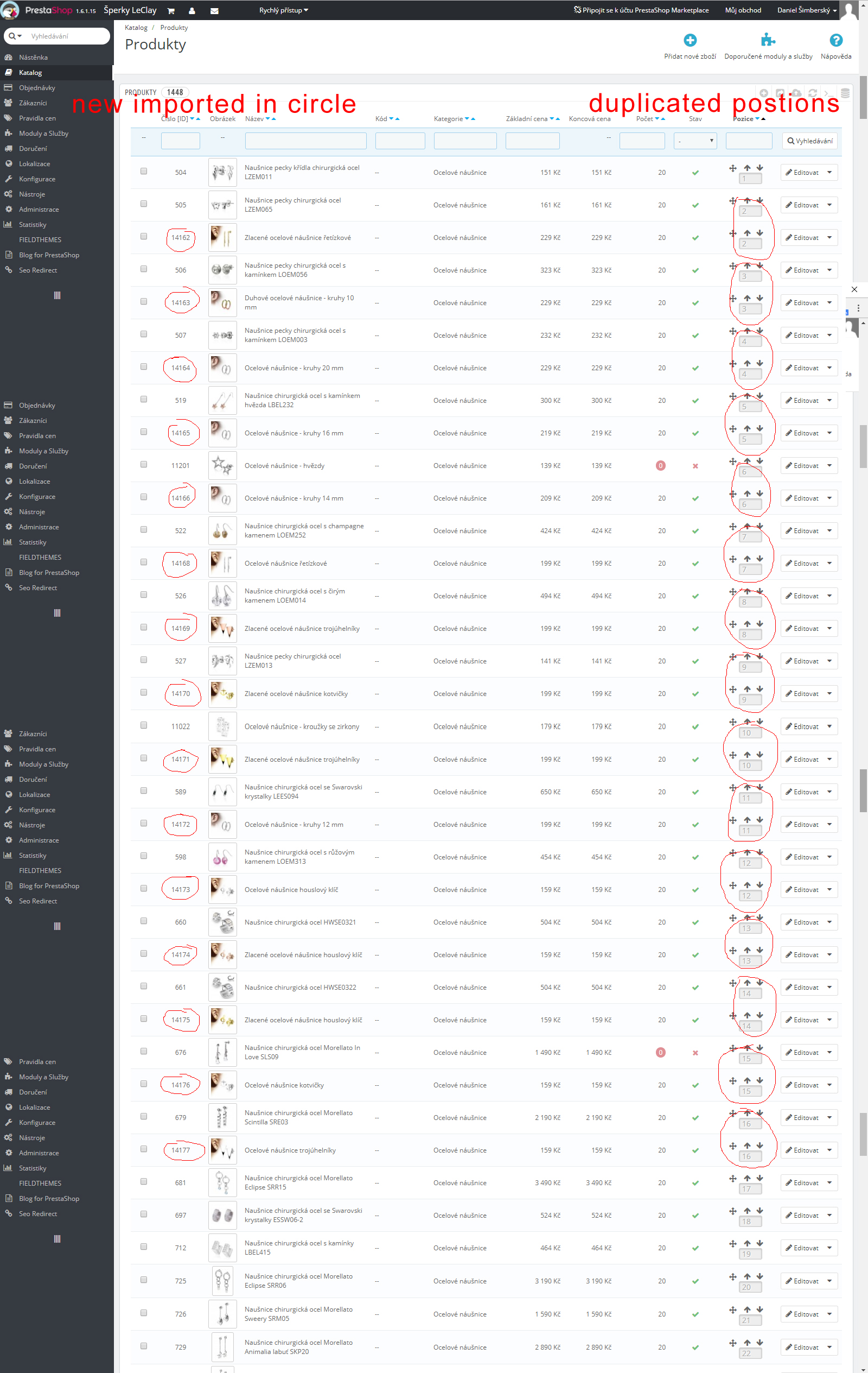 simberak Posted December 5, 2017 Share Posted December 5, 2017 (edited) Hello everybody, could you please help me with issue I found? I am desperate with that PS version: 1.6.1.15 PS settings: Pagination and sorting products: Default sorting by position inside category, Ascending I am importing products from my supplier each night. The problem is I sorted the products, and then with new imports new products are not positioned at the end of all products, but new products gets positions from beginning. So example: In category are 333 products sorted by me. When new product is added/imported, it not get the position 334, but it get position 2. Next new product get position 3, and so on. So there are duplicates in positions and new products are positioned to the beginning instead of to the end of list as it should behave. Can someone help me why this is happening? Why new products are not sorted at the end? I read somewhere that it exist some product positon index, which can be broken? Unfortunately I cant found that topic again Can you help where to look, what to check, or something? Shouldnt new product get the position number like: last position in category + 1? What are PS mechanisms of this, so I can move further in this case? In the attachment you can see new products, and that it gets duplicated positions from beginning Thank you very much for help... Daniel Edited December 5, 2017 by simberak (see edit history) Link to comment Share on other sites More sharing options...