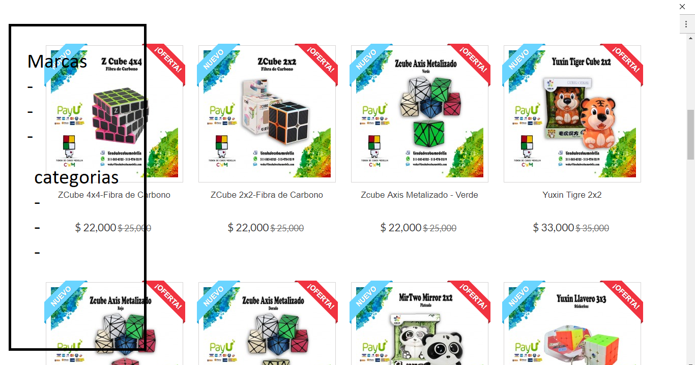1- como puedo agregar un menu o algo parecido donde mi cliente pueda observar directamente las categorias que tengo creadas de mis productos   por ejemplo marca y tipo . el menú o bloque  iria mas o menos en la zona que delimite.