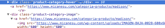webgama Posted February 17, 2018 Author Share Posted February 17, 2018 (edited) Hola, Disculpa por todo el tiempo que ha pasado, pero no me llegó notificación de la respuesta. He cambiado el código por esto y ahora no me hace ni la transición. <div class="product-category-image"><a href="https://www.micanesu.com/categoria-producto/madison/"> <img src="https://www.micanesu.com/wp-content/uploads/IMAGEN-BAJA-0028-600x600.jpg" alt="Madison" width="600" height="600" /></a> <a class="product-category-hover" ><img src="https://www.micanesu.com/wp-content/uploads/2017/08/madison_web.jpg" alt="" /></a> </div> ¿Esta sería la modificación me comentabas? Gracias, saludos. Edited February 17, 2018 by webgama (see edit history) Link to comment Share on other sites More sharing options...