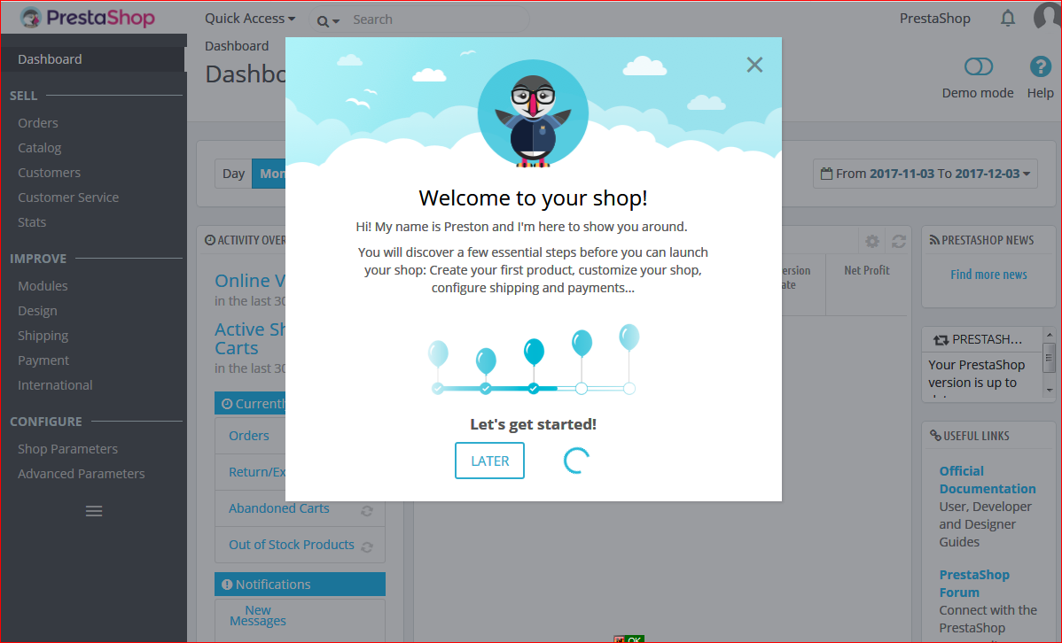Tim Cruise Posted December 6, 2017 Share Posted December 6, 2017 Hello, I can install Prestashop 1.7 successfully. However, the configuration procedure does not work at all. It keeps showing this dialogue forever. How do I correct it? My system is Ubuntu 16.04.3. Link to comment Share on other sites More sharing options...