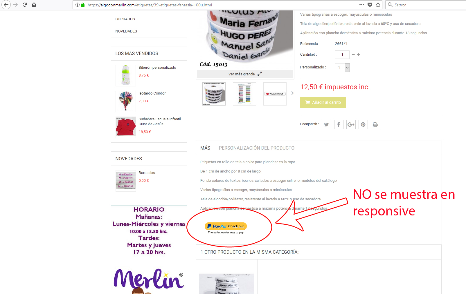 luiscabre Posted December 7, 2017 Share Posted December 7, 2017 Saludos. Tengo un inconveniente con el logo del modulo de paypal ...... no se me esta visualizando en responsive...... edite la hoja de estilos de paypal.css tambien la de global.css pero no consigo los media queries..... para poder modificarlo y hacer que el logo de paypal me aparezca en dispositivos moviles....!!!. Anexo dejo un print screen pero en modo escritorio...... quisiera saber cual es la hoja de estilos que tiene los media queries de prestasho ? Por favor necesito ayuda.. Gracias,. Link to comment Share on other sites More sharing options...