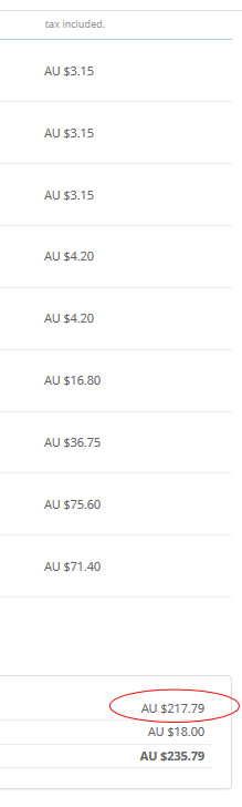 Dagorlad Posted December 10, 2017 Share Posted December 10, 2017 I'm using PrestaShop 1.6.1.0 and my shop is in Australia. All of my modules are up to date. Recently I have been seeing an error from PayPal about a discrepancy between the invoice amount that the customer sees and the amount that has been charged. This only occurs with Australian customers that are subject to the 10% GST. Overseas customers do not encounter this problem, Calculating the total of an order manually, I get a different amount than the one that is shown in the order summary, and my calculation agrees with the amount that the customer is charged. The attached image highlights the problem. The correct amount should be $218.40 but it's showing $217.79. This is a killer for me because A] my customers are losing confidence in my service, and B] I am losing money with each transaction. Link to comment Share on other sites More sharing options...