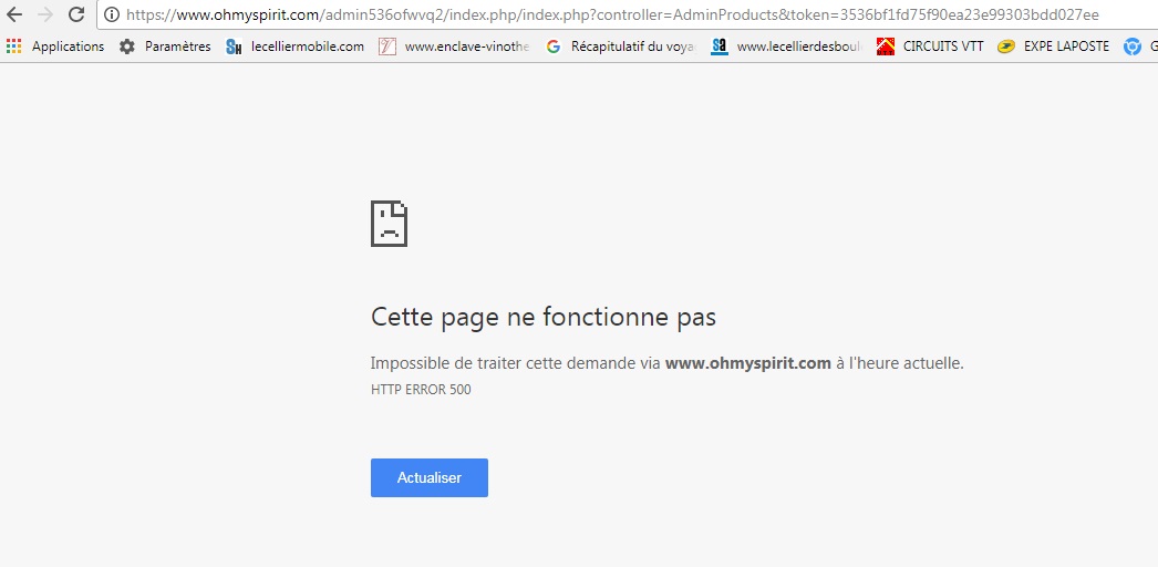 THSE67 Posted December 10, 2017 Author Share Posted December 10, 2017 Le souci est que je ne peux absolument rien faire. Quelque soit le lien que je tape pour aller sur mon interface j'ai cette page qui ne fonctionne pas. Même en tapant: https://www.ohmyspirit.com/admin536ofwvq2/ qui est l'adresse de base de mon interface. Merci. Link to comment Share on other sites More sharing options...