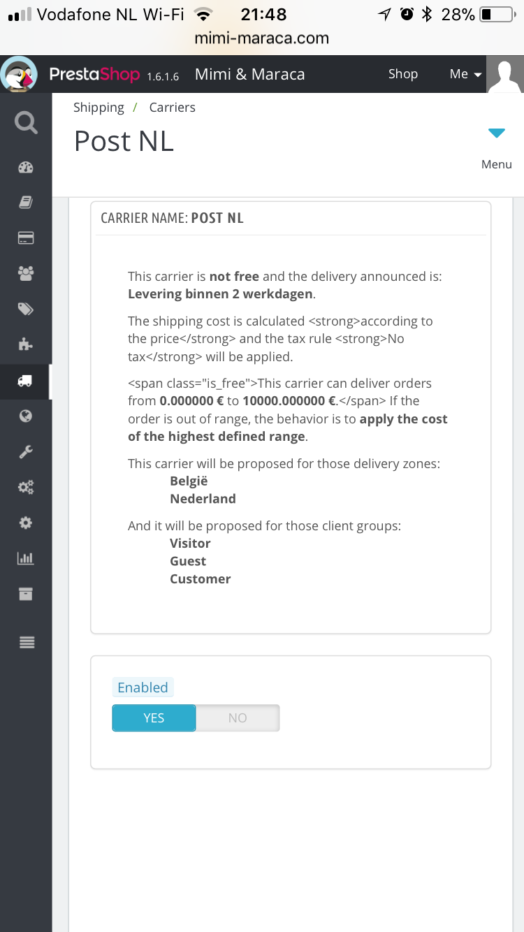 DB6 Posted December 10, 2017 Share Posted December 10, 2017 Hi Ik heb een vraag waarvan ik het antwoord niet terug kan vinden op dit forum. Ik gebruik versie 1.6.1.6 Een klant heeft een bestelling geplaatst met 2 artikelen en ook betaald via IDeal. Dit is verandert in 2 facturen met allebei verzendkosten. Hoe kan dit? Ik heb 1 carrier en 1 magazijn. Bij bestellingen van meer dan €75 worden geen verzendkosten gerekend. Bijgevoegd mijn instellingen. Ik hoor het graag van jullie wat ik niet goed heb gedaan/ moet aanpassen. Alvast bedankt Link to comment Share on other sites More sharing options...