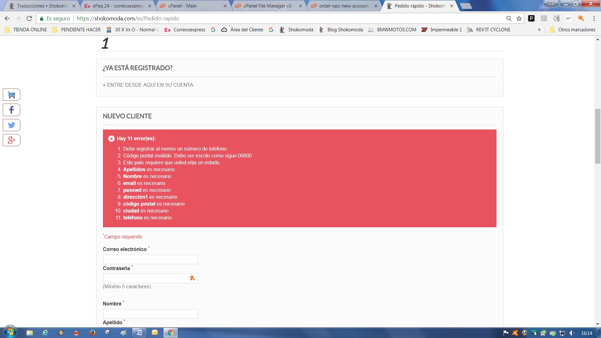 Noeliapmm Posted December 14, 2017 Share Posted December 14, 2017 Hola de nuevo. He estado mirando que en los registros, la gente tiene dificultades, y creo que el problema es, a parte de los campos innecesarios (que ya he quitado), puede venir porque los errores cometidos por el comprador al rellenar los campos, SALEN AL PRINCIPIO DE LA PÁGINA. Además, no se aprecia cambio alguno cuando salen. Simplemente, salen, pero no se ven, porque están al principio, y la persona ya está al final del formulario. He intentado que dichos errores, salgan al final, justo tras los campos del "Teléfono", aunque no soy capaz. Dejo captura de lo que quiero "mover". Estoy modificando "order-opc-new-acount.tpl" Gracias Link to comment Share on other sites More sharing options...